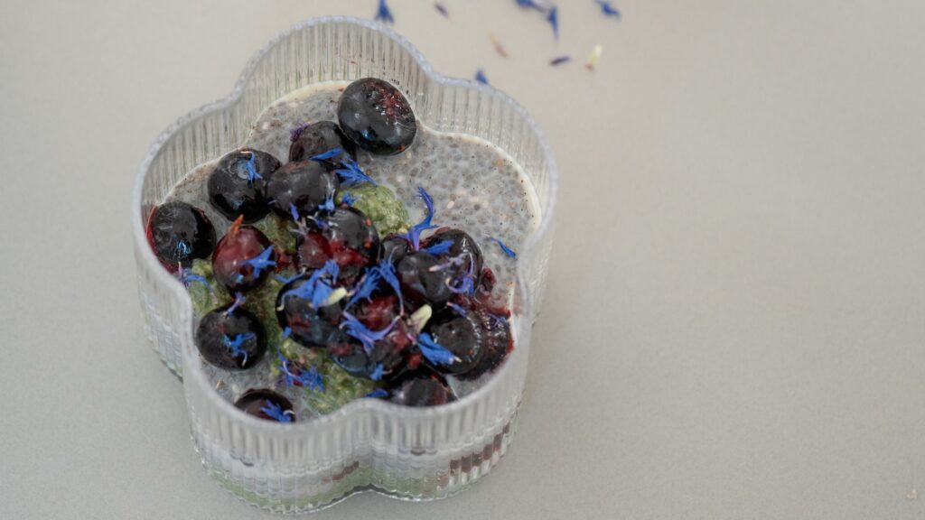Der Blueberry Matcha Chia Pudding ist mehr als nur ein Trend-Rezept. Er verbindet Ästhetik mit Nährstoffen, Genuss mit Balance. Er zeigt, dass bewusste Ernährung nicht kompliziert sein muss und dass ein Frühstück durchaus nach Dessert schmecken darf.