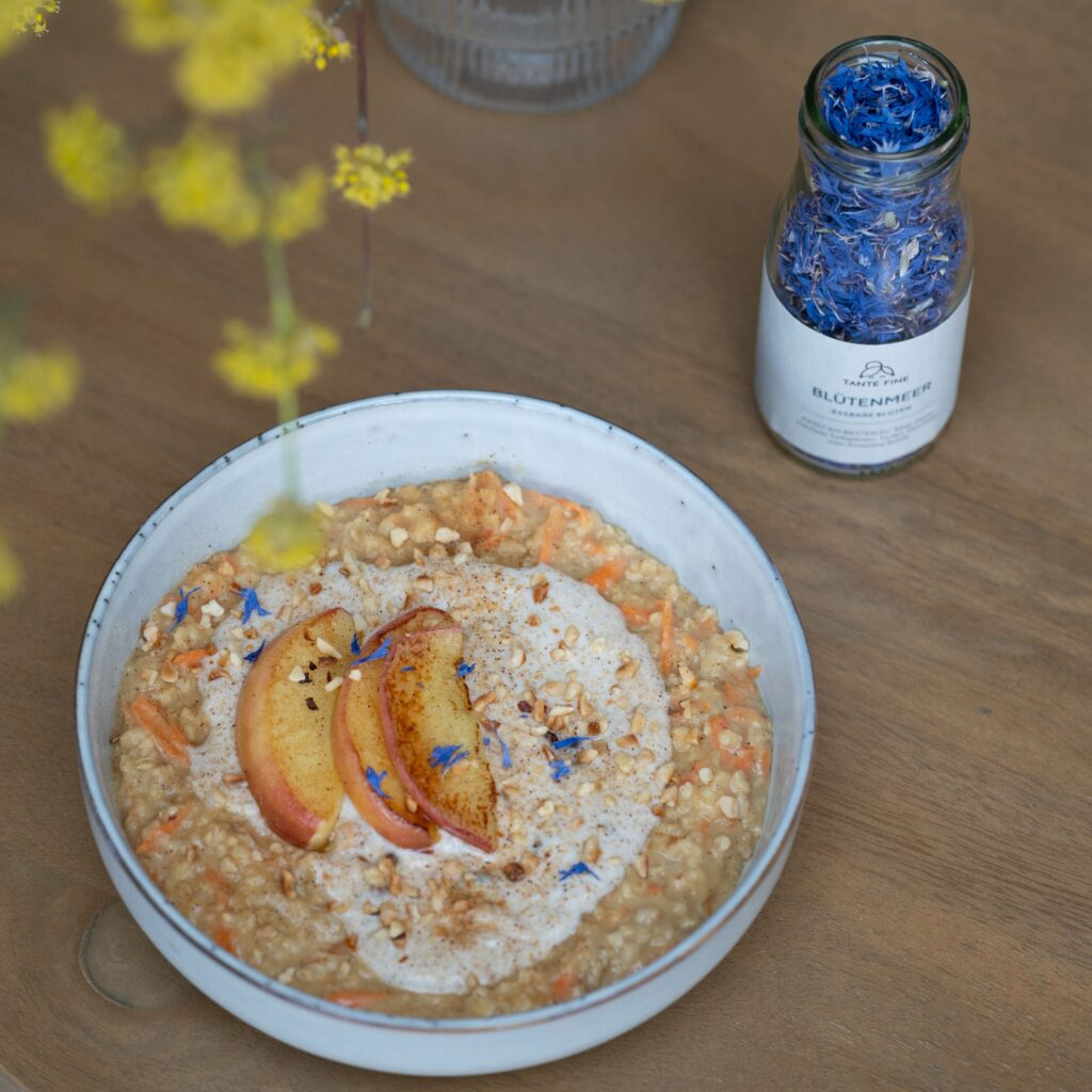 Die Kombination mit Karotten bringt nicht nur eine natürliche Süße ins Spiel, sondern auch eine Extraportion Frische und Farbe. Zusammen mit den richtigen Gewürzen entsteht daraus ein Frühstück, das sich fast wie ein Dessert anfühlt, nur eben gesünder.